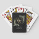 Elegant watercolor greenery leaves monogram name playing cards featuring a gold monogram initial on a chic black background. Designed by Thisisnotme©