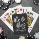 These custom poker cards feature a clean black design on the back of each card with “Mr. & Mrs” in large white handwritten script as the focal point. Directly below, the couple’s last name and wedding date appear in classic white serif fonts, creating a timeless and balanced look.