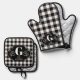 Personalized Black & White Buffalo Check Oven Mitt & Pot Holder Set
