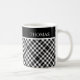 Modern black and white gingham pattern coffee mug you can easily personalize with your name in modern white typography against a black background. Perfect as a personalized Holiday or Birthday gift for him. Buffalo plaid, check or chequered pattern. If you need any help or matching products, please contact us at happydolpinstudio@outlook.com. Exclusively designed for you by Happy Dolphin Studio.