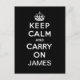 Personalized Black White Keep Calm and Carry On Postcard