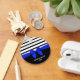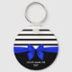 Personalized Black white Stripe Christmas Blue Bow Keychain