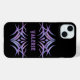 This custom black case features a 3D purple tribal design and is personalized with your name or initials. Great gift!
