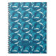 Add a name to create your own customized notebook. This spiral notebook features simple illustrations of trout fish in ivory, teal blue and navy blue set against a cool blue background. Your name appears in navy blue lettering inside a medium blue box.