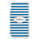 Bright blue and white horizontal stripe phone wallet with a white banner you can easily customize with your name!