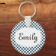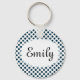 Cute personalized white keychain with navy blue polka dots. Add your name or initials / monogram to make it your own.