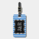 Personalized blue and white striped luggage tag. Elegant style. Classy royal blue stripe design with white monogrammed name intitial letters of couple. Great gift idea for husband and wife, married couples and newly weds going on honeymoon. Cute 3 letter monogram with striped pattern. Customizable background colour.