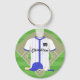 Cute baseball themed design. Featuring on the front a blue and white striped baseball jersey which can be customized with a name and number, a blue baseball cap, baseball and baseball bat. The background features a baseball field.