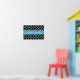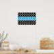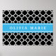 A cute, girly, modern black and white Moroccan quatrefoil pattern background with a bright blue customizable name template. Chic, trendy, mod trellis lattice background.