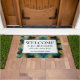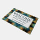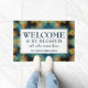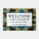 Personalized Blue Bokeh WELCOME Doormat WELCOME Metal Sign with the wording WELCOME & BE BLESSED ALL WHO ENTER HERE plus placeholder name. The background is a turquoise bokeh pattern. All text is CUSTOMIZABLE so you can amend the wording to suit your needs.
