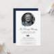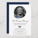Elegant blue floral memorial service/celebration of life/funeral invitation featuring a photo frame adorned with blue roses and greenery. Easily personalize this card with a photo of your loved one and the memorial/celebration of life/funeral details.