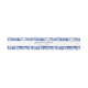 An invitation belly band with a blue floral toile design and space for the bride and groom's name and wedding date.