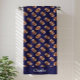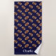 This football beach towel design is complete with a seamless pattern of footballs as well as a dark blue background colour and a place to add your name.