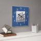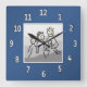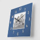 A simple wall clock where the time circles around you or your beloved ones! Add your personal photo and this clock will transfer into a valuable item for yourself or someone you'd like to surprise! The coloured square frame is blue, and digits are white with a certain black shadow. There exists 5 colour variations of this design - teal, black, silver, blue and pink.
