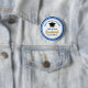 These modern blue, white, and gold custom graduation party buttons feature classy typography of your university or college name for the class of 2026. Customize with your graduating year next to the chic handwritten script and black grad cap for a great personalized congratulations graduate party favor.