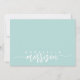 A chic personalized stationery flat note card featuring your name in a white brush script with decorative swashes on a blue green background. Modern simple elegance.