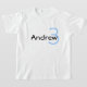 Name and Age Birthday T-shirt with blue and black text that you can easily customized before ordering with your child's name and age. It's a perfect T-shirt for your child's birthday party!