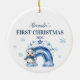 Personalized Blue Penguin Baby First Christmas Ceramic Ornament