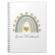 A simple cute personalized blue boho style rainbow encircled by metallic gold hearts personal or school notebook. Customize with your name in a whimsical script type.