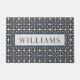 Personalized navy blue tile pattern with geometric shapes and your family name.