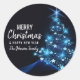 Personalized BLUE White MERRY CHRISTMAS Tree Classic Round Sticker