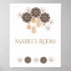 Brown and White Boho Floral Girl's Monogram Baby's Room Wall Decor. Personalize with your child's name. Add frame and it makes a great baby shower gift! Modern, natural, neutral colors.
