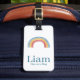 This personalized waterproof tag is the perfect stroller ID and daycare essential for new moms. Never lose your baby's essentials again with our custom name bag label. Featuring a trendy Boho Rainbow design, you can easily personalize the front with your child's name and the back with emergency contact info. Made for busy parents who value both style and organization, it makes a thoughtful baby shower gift or a practical addition to any nursery gear collection. Durable and easy to attach to any diaper bag or backpack.