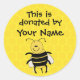 These customizable round vinyl stickers have an image of a cartoon honey bee on a honeycomb background.