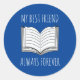 Personalized Books Book Lover Classic Round Sticker designed by Nisha Prabhu CuteHomeGifts. Cute book illustration with message'' MY BEST FRIEND. ALWAYS FOREVER.'' Perfect gift for book lover. Fully Customizable. Personalize with your own message, quote or text.