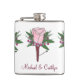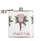 Personalized Boutonniere Pink Rose Wedding Groom Hip Flask