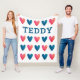 Personalized Boy Blue Red Hearts Valentines Day Fleece Blanket