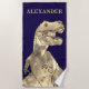 Personalized boys name Roaring T-Rex Dinosaur Towel Custom Prehistoric dino navy blue Beach Towel for kids