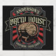 Personalized Brew House Beer Brewing Bar design, featuring an old style beer label look with oak barrel. Customize with your Name or Custom Text!