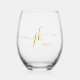 Personalized Bride Name Gold Script Monogram Stemless Wine Glass