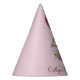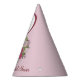 Party hat features an original marker illustration of a pink rose floral ball bouquet. Great for any bachelorette party, bridal shower, engagement party, or other wedding event! Simply personalize with the name of the bride.