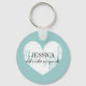 Personalized bridesmaid keychain | Turquoise / teal blue and white weathered heart. Elegant stylish typography design. Make one for bride, bridesmaids, maid of honour, flower girl, mother of the bride etc. Customizable background colour to match your wedding party or bridal shower.