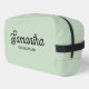 A sage green personalized wedding dopp kit perfect for bridesmaid gifts, bridesmaid proposal gifts, Bachelorette Part gifts and bridal shower prizes. Customize the dopp kit to your name and title and create a unique wedding party gift. Ideal for Cosmetic Bags, Makeup Bags and Toiletry bags.