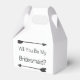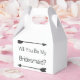 A personalized gift box for when you ask her to be your Bridesmaid! Script text for the name you can insert on the top, with the message of "will you be my bridesmaid" on the front with arrows. Personalize the back with a custom photo