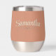 This beautiful Copper coloured tumbler has a script font for the word Bridesmaid in cream on the front with delicate watercolor wildflower sprig accent behind it. The Bridesmaid's name is on the back with Sagebrush accents below, adding a touch of Elegance to elevate that Rustic feel! Personalize with the easy to use template for your specific name. This design is also offered in a tall insulated Travel Tumbler at the Ivy Barn Studio. Both were designed to coordinate perfectly with my Rustic Boho Wildflowers Copper and Cream Wedding Suite Collection! This is unique and stylish and will be her "go-to" Wedding Cup to take with her when she goes shopping with you for your wedding dress, go out with all the girls, or getting together for any reason! *Don't forget to check out the rest of This Collection to get the ladies of the wedding party their version (perfect for the bridesmaid's gifts! ) to Celebrate in style together!! Great Mother of the Bride / Groom gift too!