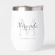 features personalized bridesmaid's name in grey classic script font style and monogram in light grey classic serif font style as background with title and wedding date in grey classic serif font style on white background.