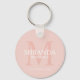 This design features personalized bridesmaid's name with title and wedding date in white and monogram in blush pink as background, in classic serif font style, on blush pink background.