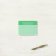 These custom post-it notes feature a background image of a field of medium green with subtle changes in tone and value and a gritty grain texture to give it an organic feel. The lower 75% of the note pad is lightened for easier writing. Text fields are provided for your name, company/title, and contact information. Any of these can be edited or removed. The text use white lettering with contrasting serif and sans serif fonts for a clean, professional look.