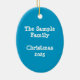 Brightly colored palm tree with christmas lights, blue ocean background, and blue and white color scheme.  Share the Holidays with these personalized ornaments, sure to be a great conversation starter. Great christmas gift for anyone!
