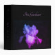 A brilliant purple iris stands out from the dark background of this dramatic floral binder. This striking effect was created by adding the colour to a black-and-white photo. The contrast almost makes the petals seem to glow. Above the flower on the front cover and on the spine, a name appears in beautiful lavender letters. Just replace the sample name in these places to make this a beautiful personalized gift for yourself or for someone special. It's sure to stand out wherever you use it. Enjoy this vivid twist on botanical photography