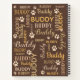 Brown Personalized throw pillow for your dog. Customizable with your dog's name. When you change the name Buddy to your own pet's name it will change all the typographical names at the same time. Word cloud art typography. Different font type and styles in brown and beige paw prints that looks great with a rustic barn style home. Trendy and modern design. Everything is customizable. You can change the brown background colour, change the font style and size and colour. The cute brown puppy dog is fluffy/wavy with a sort of beard and looks like a Goldendoodle, Groodle, Labradoodle, Retriever, Terrier, Poodle. Cockapoo, Cavapoo, Maltipoo, Havanese, Schnoodle, Shih Tzu, Lhasa Apso, Yorkshire Terrier, Sheepdog, Schnauzer, Bearded Collie, and many more.