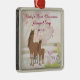 This Baby's First Christmas Ornament for girls features a Pretty Brown Mare and Filly with a beautiful water colour background. They are standing among pretty flowers a wooden fence and a beautiful tree. It can be personalized with a name, year and any text you would like. ~