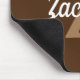 This personalized mouse pad features a tan monogram and white retro script name on a dark brown background.