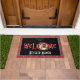 A bloody, brown werewolf with scary, sharp fangs, welcomes visitors and guests to your home and/or Halloween party. Personalize with your name and the year you moved into your home, or whatever details you'd like. According to folklore, a werewolf, or lycanthrope, is a human with the ability to shapeshift into a wolf during the night of a full moon. Most modern fiction says that silver bullets or weapons are the only way to kill werewolves. The border of this door mat is our silver bullet fabric pattern on a red background. For a bit of trivia - David Kessler is the name of the main character in American Werewolf in London.