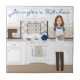 Give an unique gift for the cook with a personalized tile design for your kitchen. In blue and beige shades with a brown hair cook. Original design by Night Owl's Menagerie, 2016.