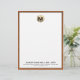 Elevate your professional image with this personalized luxury monogram letterhead. The design features a brushed gold medallion initial at the top, with your name and contact information in classic block typography on a clean white background, trimmed in sable brown leather print. Perfect for adding a touch of sophistication to your correspondence.